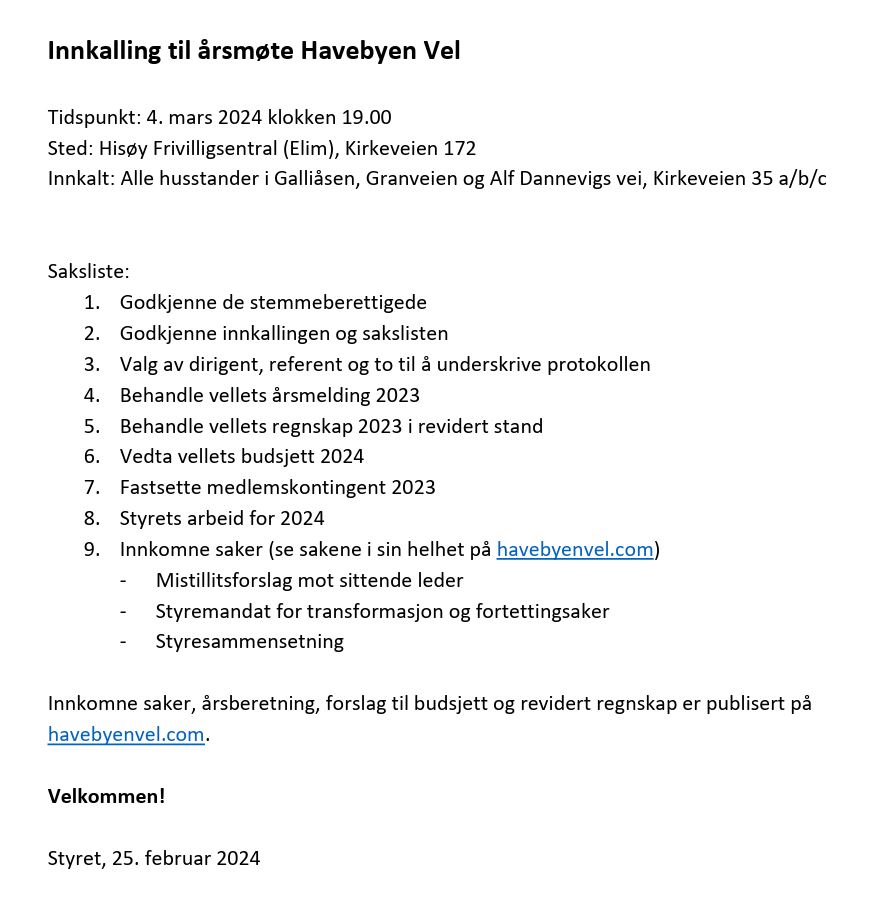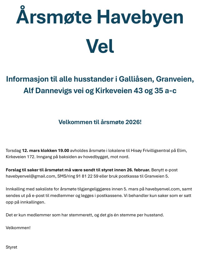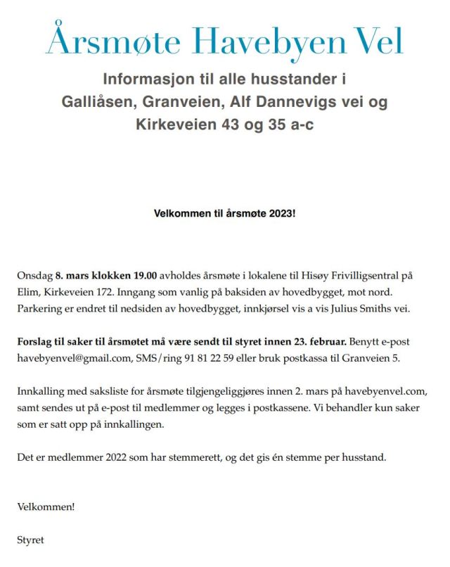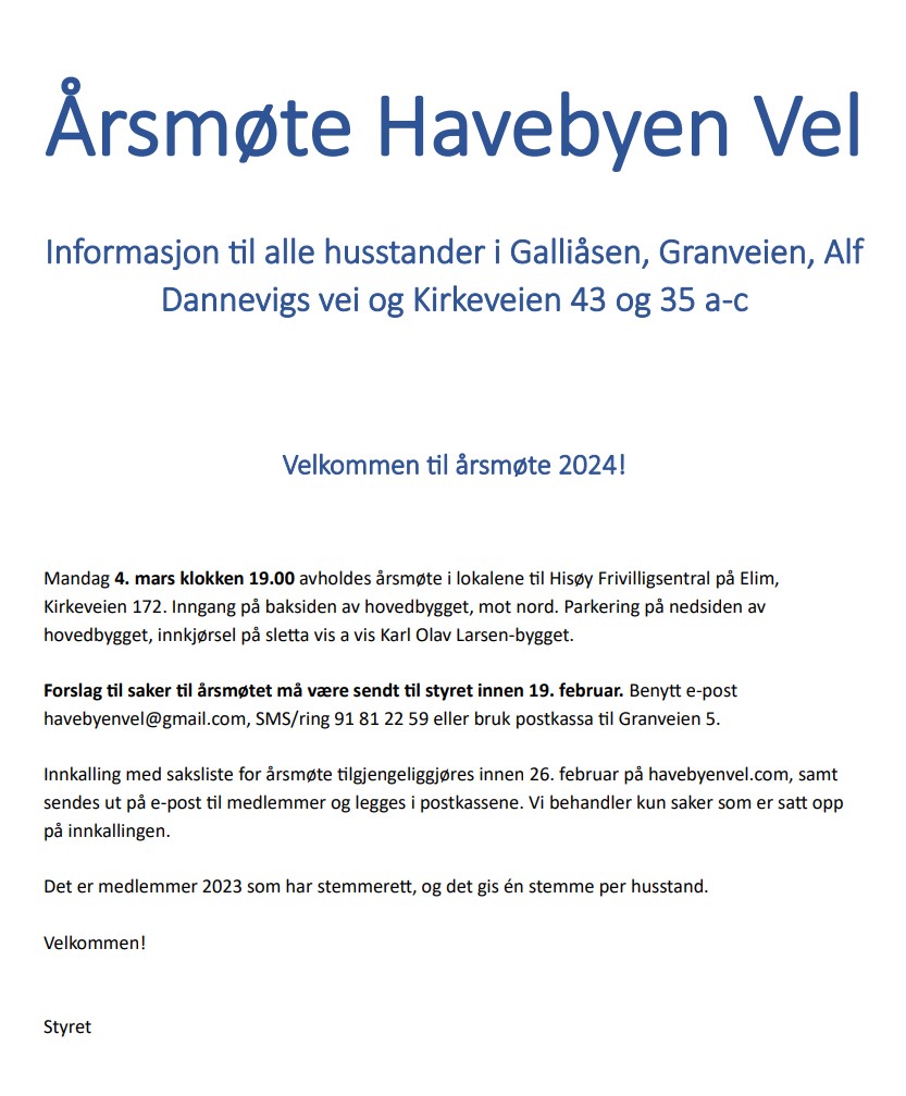 Hjem Velkommen til årsmøte 2023 Velkommen til årsmøte 2022 Velkommen til årsmøte 2021 Velkommen til årsmøte 2020 Klikk her for dokumenter til årsmøte